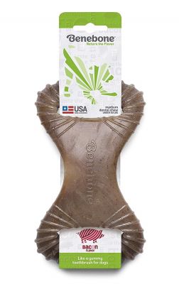 Benebone is een hondensnack met baconsmaak die honden urenlang zal plezieren. Ergonomisch ontwerp - We hebben de Benebone zorgvuldig ontworpen met honden in gedachten. Benebones zijn gebogen zodat honden het ene uiteinde kunnen opduiken en een bevredigend kauwmoment kunnen krijgen. Dit is ook nuttig voor jichtige honden. Het heeft diepe groeven waardoor pups goed kunnen bijten, en een groter oppervlak voor een betere geur en smaak.