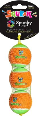 Squeaky tennisballen van Spunky Pup hebben een duurzame ingebouwde pieper. Ballen zijn hondveilig zonder schadelijke gasvulling. Er zijn geen schuurmiddelen in het oppervlak gebruikt, wat betekent dat ze veilig zijn voor de tanden van uw hond. 3 ballen in een pak.