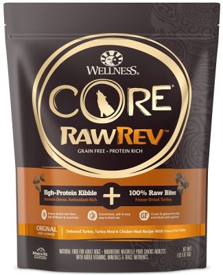 Welkom bij de rauwe revolutie! Met CORE RawRev kun je gemakkelijk en veilig rauw toevoegen aan elke maaltijd. Eiwitrijke, graanvrije brokjes worden gecombineerd met 100% rauwe vleesstukken om een hartige, voedzame maaltijd te creëren boordevol alles wat uw hond nodig heeft om te gedijen vanuit de kern.