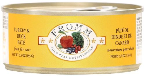 Een heerlijk vers feestmaal van gevogelte voor de favoriete kat in je leven! Alle Fromm-producten zijn gemaakt van de meest verse ingrediënten en USDA geïnspecteerd om ervoor te zorgen dat uw huisdier de best beschikbare voeding krijgt, en het heerlijke kattenvoer met kalkoen en eendenpastei is hierop geen uitzondering. Het is fijngehakte kalkoen gekookt in bouillon. Graanvrij en perfect voor alle levensfasen! Serveer op zichzelf of als topper voor droogvoer Gemakkelijke manier om hydratatie toe te voegen aan het dieet van uw kat Gechelateerde mineralen stimuleren het immuunsysteem Gemaakt zonder granen, een veel voorkomende allergietrigger voor katten Geschikt voor alle levensfasen Grootte: wordt geleverd in 12 blikken per doos, 5,5 oz per blik Fromm Four-Star Nutritionals® Kalkoen- en eendenpasteivoer voor katten is samengesteld om te voldoen aan de voedingsniveaus die zijn vastgesteld door de AAFCO Cat Food Nutrient Profiles for All Life Stages.