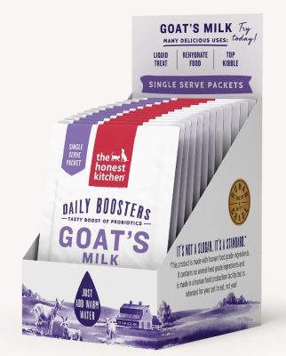 Gemaakt van goed verteerbare gedehydrateerde geitenmelk plus 5 miljard actieve probiotica en spijsverteringsenzymen, is geitenmelk vooral geweldig voor puppy's en kittens en helpt het hun spijsvertering, immuunsysteem en welzijn te ondersteunen. Meng dit pakket gewoon met warm water om uw huisdier een verrukkelijk drankje te geven, giet het over droogvoer of gebruik het om onze gedehydrateerde voedingsmiddelen te rehydrateren.