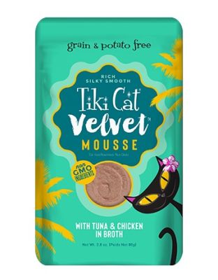 Tiki Cat Velvet Mousse Tuna & Chicken Cat Food Pouch is een rijk en zijdezacht eiwitrijk, vetrijk dieet op basis van vlees, gemaakt met kwikveilige, in het wild gevangen tonijn. Kwikveilige, in het wild gevangen tonijn. Antibioticavrije kip. Aanvullende taurine voor gezonde ogen en hart. Gechelateerde mineralen toegevoegd voor een betere opname van voedingsstoffen. BPA-vrij. Geen GGO's. Geen koolhydraten. Super Silky Mousse, perfect voor katten, oudere katten en katten met een kieskeurig gehemelte. Maat: 12x2.8oz zakjes/doos