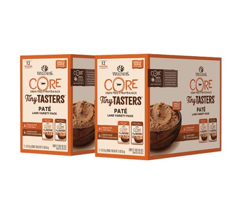 Wellness® CORE® is gebaseerd op de voedingsfilosofie dat katten, gezien hun voorouders, gedijen op een dieet dat voornamelijk uit vlees bestaat. Met de zachte paté-textuur waar katten dol op zijn en de eiwitrijke smaak waar ze naar hunkeren, zal CORE Tiny Tasters zeker een hit worden bij zelfs de meest kieskeurige katachtigen! Deze complete en uitgebalanceerde recepten zijn verkrijgbaar in gemakkelijk uit te knijpen zakjes van perfect formaat, ontworpen om restjes te elimineren. Hoogwaardige eiwitbron Gezonde eiwitmix Hydratatie en urinaire ondersteuning 100% graanvrij Easy-squeeze zakjes voor eenmalig gebruik Volledige en uitgebalanceerde voeding Grootte: 24 x 1,75 oz per doos Voedingsrichtlijn: Elke kat is een beetje anders, dus optimale voerhoeveelheden kunnen variëren met leeftijd, grootte, activiteitenniveau, ras en omgeving. Gebruik de voedingsrichtlijnen als eerste aanbeveling en pas deze indien nodig aan. Ongebruikte portie altijd in de koelkast bewaren. ZakformaatAlleen voerenVoeden met droogvoer 1,75 ons 3-4 zakjes voor elke 6 - 8 lbs lichaamsgewicht Verminder ⅛ kopje voor elke 1 natte zak.