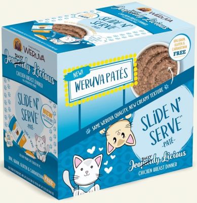 Een paté zonder compromissen! Weruva Slide N' Serve Dinner Pate is gemaakt van hoogwaardige ingrediënten die voorzichtig worden gepureerd tot een hydraterende paté. En voor de huisdiereigenaar, geniet van het gemak van Slide N' Serve - Open gewoon het zakje, schuif het voer eruit en bereid het naar de inhoud van uw kat. Slide N' Serve - Open gewoon het zakje, schuif het voer eruit en bereid het naar wens van uw kat Gemaakt van hoogwaardige ingrediënten - elk ingrediënt wordt voorzichtig gepureerd Graanvrij, glutenvrij en carrageenvrij Voedingsrichtlijnen / Aanwijzingen: Voer volgens de leeftijd, grootte en activiteit van uw kat. Als u alleen voedt, voer dan dagelijks 1,0 oz voor elke kilo lichaamsgewicht. Uw kat moet altijd toegang hebben tot schoon, zoet water. Koud bewaren na openen.