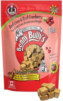 Kattenbezitters hebben Benny Bullys ontdekt als een voedzaam, puur en natuurlijk alternatief voor traditionele kattensnoepjes. Onze nieuwe functioneel voedzame Plus-lijn voegt smakelijke ingrediënten met bekende voedingsvoordelen toe aan onze originele Benny Bullys Liver Chops. Benny Bullys Plus Cranberry biedt katten een heerlijke mix van de natuurlijke voedingsmiddelen die te vinden zijn in echte veenbessen en runderlever.