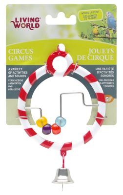 Met Living World Circus Toys kunnen huisdiervogels dromen over deelname aan het circus. Onze complete lijn biedt stimulerend entertainment dat is ontworpen om uw gevederde metgezel te inspireren om te oefenen, te communiceren en te spelen, waardoor de dagelijkse routine van het kooileven wordt verlicht. Dit specifieke speelgoed heeft een plastic ring met rode strepen, een bel en een telraam met vier veelkleurige kralen die langs een verwrongen metalen strip bewegen. Geschikt voor grasparkieten, kanaries en vinken. Belangrijkste kenmerken: Vogelspeelgoed met circusthema Leuke en stimulerende afleiding Inspireert vogels tot interactie, lichaamsbeweging en spel Helpt de dagelijkse kooiroutine te verlichten Met een roodgestreepte plastic ring, een bel en een telraam met vier veelkleurige kralen