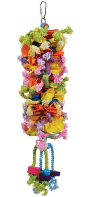 Prevue Pet Products Calypso Creations Club bevat elementen zoals kleurrijk katoenen touw, papier, plastic of houten kralen, hardhouten blokken, plastic rietjes en meer. Calypso Creations-speelgoed voldoet aan de behoefte aan vervellen, plukken en poetsen van elke vogel.