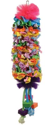 Prevue Pet Products Calypso Creations Dagwood bevat elementen zoals kleurrijk katoenen touw, papier, plastic of houten kralen, hardhouten blokken, plastic rietjes en meer. Calypso Creations-speelgoed voldoet aan de behoefte aan vervellen, plukken en poetsen van alle vogels.