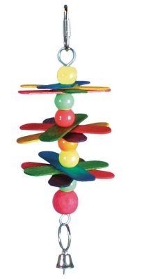 Prevue Pet Products Chime Time Summer Breeze-speelgoed boeit vogels met heerlijke geluiden en onverwoestbaar speelgoed bestaande uit aluminium klokkenspel, plastic kralen en rubberen ringen. Elk speeltje in deze lijn kan eenvoudig met snelkoppelingen aan vogelkooien worden bevestigd en is gemaakt van 100% veilige, niet-giftige materialen.