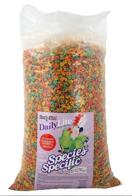 Veelkleurig, meervoudig gevormd, geëxtrudeerd vogelvoer met 14% eiwit en 3% vet, ontwikkeld voor vogels die vatbaar zijn voor obesitas.
